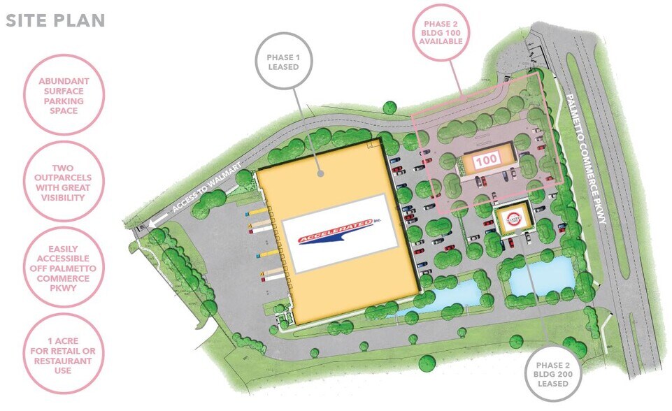 9585 Palmetto Commerce Parkway is a one-acre outparcel located just feet from the bustling intersection of Ladson Road and Palmetto Commerce Parkway. This site is pad-ready for development and is permitted for a drive-thru, making it an ideal fit for a fast-casual restaurant use. With multiple ingress and access points and a designated turn lane, this property is well-suited for a variety of retail uses.