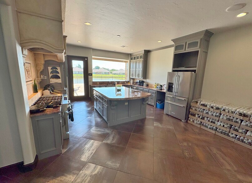 Newly Installed Gate/Fence/Camera System. 6+ Private Offices. Full Bathrooms with Showers in Each Office. 3 Car Garage currently used as Gym. Saferoom/Tornado Shelter. Full Kitchen. Glass Conference Room. Outdoor Patio overlooking Pond. Built in 2005 & Renovated in 2018.