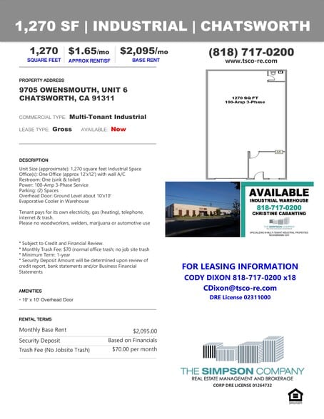 CHATSWORTH WEST ONE 9701 Owensmouth Ave 1,270 - 2,540 SF of Industrial Space Available in Chatsworth, CA 91311