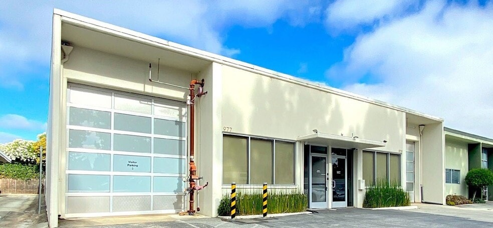 - 979 Commercial Street offers 3,050-square-foot flex R&D space in Palo Alto, featuring polished concrete floors, roll-up doors, and high ceilings.