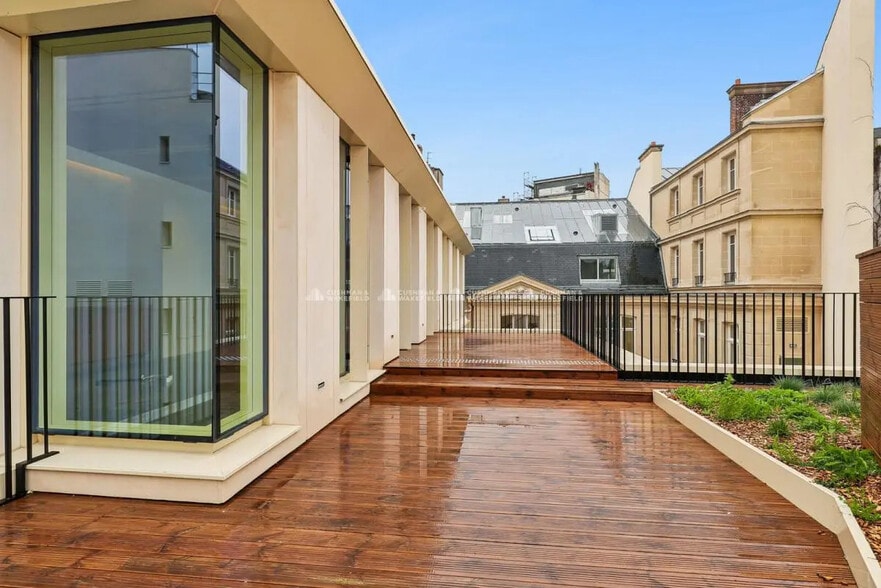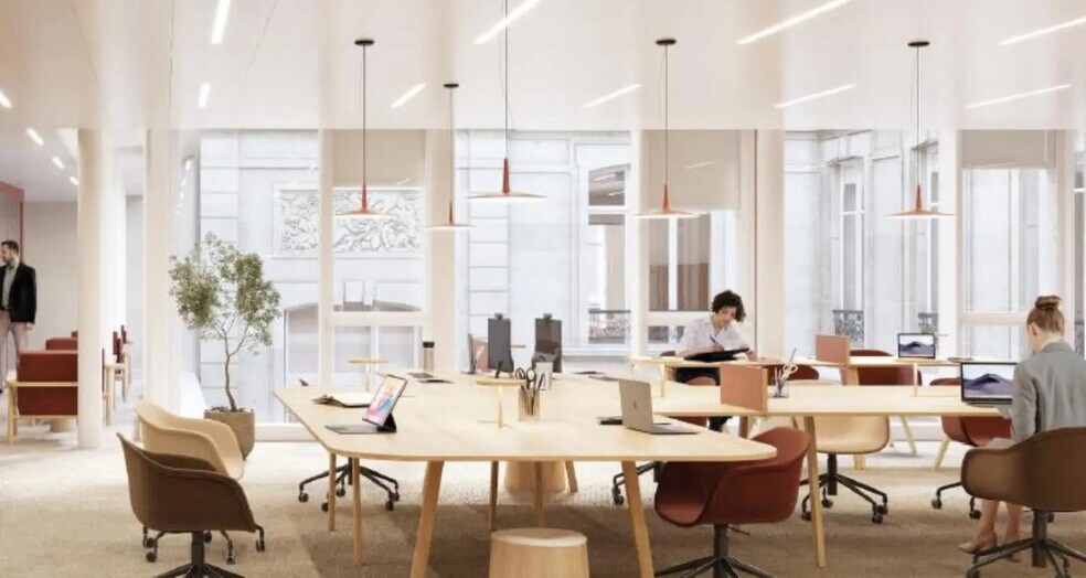 The 98 Victoire combines the elegance of its architecture with the quality of its features: a sleek reception hall opening onto a landscaped patio, communal spaces, spacious and flexible office floors, gardens, and rooftop terraces serving as informal workspaces to inspire creativity for all. The restructuring and expansion project for 98 Victoire is part of a thoughtful approach to preservation, enhancement, and adaptability of the building and its uses. The intervention primarily focuses on the existing structure, complemented by an extension to incorporate an office program that offers communal areas and high-quality outdoor spaces. This office building is conveniently located near public transportation: - 4-minute walk to Metro lines 3 and 9. - 5-minute walk to Gare Saint-Lazare. - 5-minute walk to RER A. - 5-minute walk to Metro line 12. Major restructuring. 265 m² of outdoor spaces.