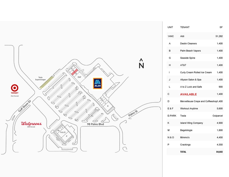 | Total Space Available | 1,400 SF | Frontage | 984’ on Us-98 Hwy |