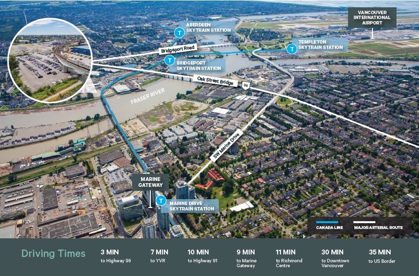 • 5-minute walk to Canada Line’s Bridgeport Station.