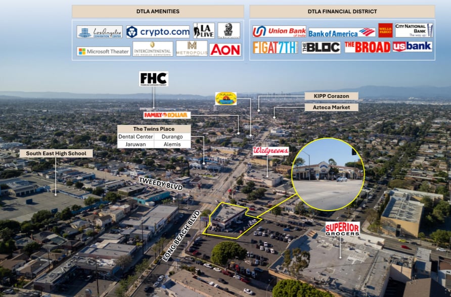 - SITS AT THE MAJOR SIGNALIZED INTERSECTION OF TWEEDY & LONG BEACH BLVD WITH DAILY CAR TRAFFIC COUNTS OVER 40,000 CARS PER DAY