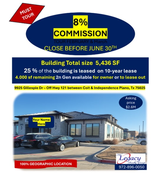 Acadian Office Park - Building 1 9925 Gillespie Dr 5,436 SF Vacant Office Building Plano, TX 75025 For Sale
