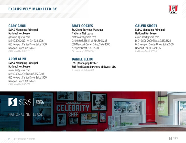 KFC | 10 Yrs NNN | 800+ Unit Guarantor 9950 W Roosevelt Rd 2,456 SF Retail Building Westchester, IL 60154 $1,936,422 CAD ($788.45 CAD/SF) 6.75% Cap Rate