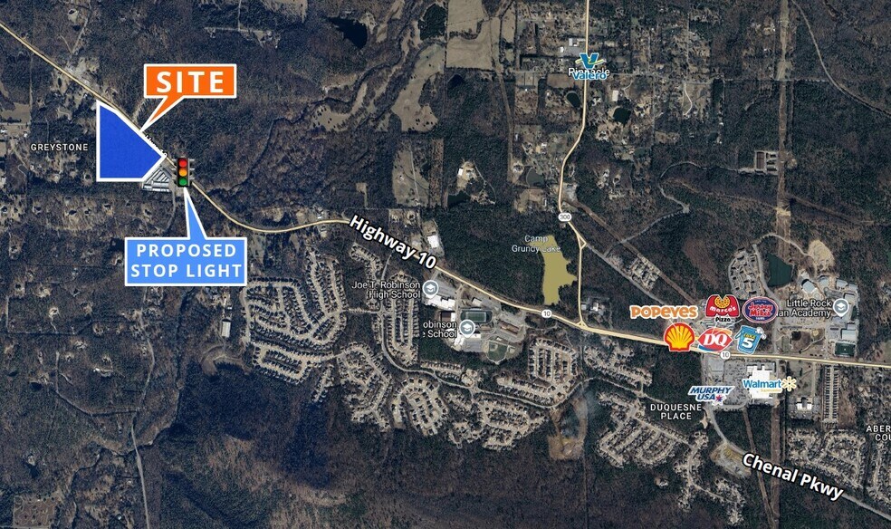 This 24.47 acres of land near the intersection of Arkansas Highway 10 and Ferndale Cutoff Road is now available for sale with Colliers | Arkansas. The land is currently zoned for residential use but could potentially be re-zoned for commercial use. The seller is willing to subdivide the acreage.