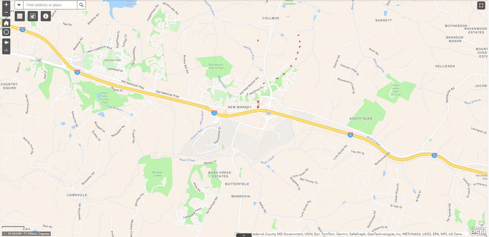 • The property has public sewer, electricity, & telecommunications services access. Public water is not yet available. According to the appraiser “The Frederick County water
