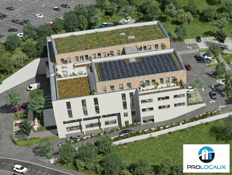 Prestations - équipements : Ensemble de locaux d'activité et de bureaux, édifié sur un foncier de 14000m², dans un périmètre convoité du Grand Annecy, et constitué de 2 bâtiments.Le bâtiment A comprend :- 2 647 m² de locaux d'activité hauteur libre 6,60 m (3.30m sous mezzanine)- 1 544 m² de bureaux (nous consulter) Chaque lot est livré bruts de béton fluides en attente, modulable et aménageable selon le volume souhaité.Lot A1 : 1280,94 m² (957,62 m² au sol + 323,32 m² en mezzanine)Lot A2 : 878,49 m² (697,66 m² au sol + 180,83 m² en mezzanine)Structure réalisée en béton.Couverture multicouche isolée, panneaux photovoltaïques et/ou toitures végétaliséesSéparation des lots en murs agglomérés ou béton coupe-feuChâssis en aluminium, fixe ou oscillo-battant, avec un double vitrage clair.Dallages de type industriel avec une surcharge admissible de 1000 kg/m² (250kg/m² pour les mezzanines)Espace en toiture prévu pour l'installation par le preneur d'un système de chauffage/ventilationLanterneaux de désenfumage.Portes sectionnelles isolées, motorisées (bâtiment A : 4,00 x 4,50m - bâtiment B : 3,50 x 4,50m)Portes de service isolées (1m x 2,20m)Escalier avec garde-corps pour accès en mezzanine (sans garde corps)Compteurs pouvant être alimenté pour un tarif bleu 36 kva.Entrée et sortie pour les véhicules légers et poids lourds, zone de retournement PL116 places de stationnement sur deux niveaux de parkings en sous sol 108 places des stationnements extérieursdont 45 emplacements avec réseau en attente pour recevoir une borne de charge de véhiculeet 4 emplacements équipés de bornes 22kW.2 locaux fermés pour cycles de 197 places.Engazonnement des espaces, plantation d'arbres et arbustes d'essences locales.Toitures végétalisées sur les locaux d'activitésEvergreen et evergravier pour les parkings aériens. Livraison Juin 2026 (Bâtiment A)