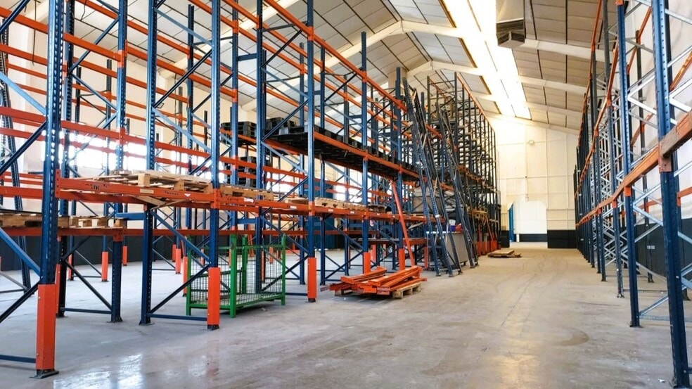 Ref.: 14543. Impressive warehouse for sale and rent. Located in the "El Guijar" industrial area, on a plot, according to the land registry, of 1,977 m2, with a built area of 2,458 m2. Due to its special features and versatility, it is suitable as a logistics warehouse or for any other activity requiring large spaces and excellent facilities. It consists of three floors. The ground floor, with 1,500 m2, is divided into two contiguous and perfectly connected areas, one of which has shelving for high storage and a mezzanine that can be dismantled if needed. This floor also includes an office, changing rooms, and restrooms for workers. Outside, there is a side and front yard covering an area of 487 m2, with a loading dock and ramp, facilitating loading and unloading operations. In this yard, there are two rooms that can be used as additional storage or as a compressor room, machine room, etc. On the first floor, there are two restrooms and a large dining area. The second floor houses the main offices, with a total of five offices, a large distributor and reception area for visitors, and a kitchenette, ideal for having a coffee or snack without leaving the office. The warehouse is in very good condition, as it has been recently updated and enjoys plenty of natural light, thanks to the large skylights, which makes work easier. Main features: - Height: minimum of 8 meters and maximum of 10.70 meters. - Access gates: 2 measuring 5.9 meters x 4.8 meters. - Interior folding gates: 3. - 380V three-phase electrical installation. - Fire extinguishers. - Insulated ceilings with alumisol. - Concrete and epoxy resin flooring. - Air conditioning. - Dining area. - Security bars. - Yard with loading dock.
