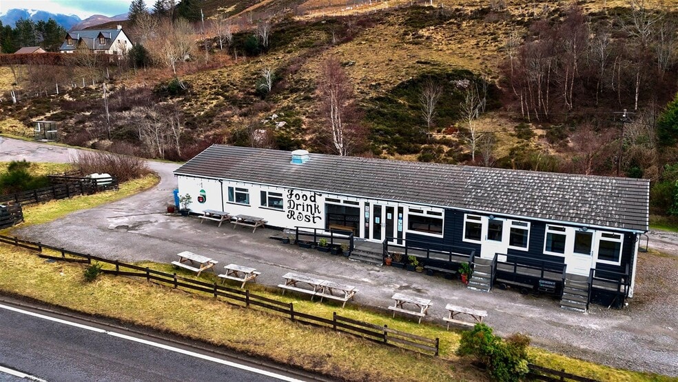 The Pitstop at Kintail is a prime A87 roadside licensed café with a fully equipped commercial kitchen, ample parking and campervan licence. The business enjoys panoramic views over Loch Duich and the Five Sisters of Kintail, and includes two self-contained studio apartments, strong seasonal trade and further development potential (STC).