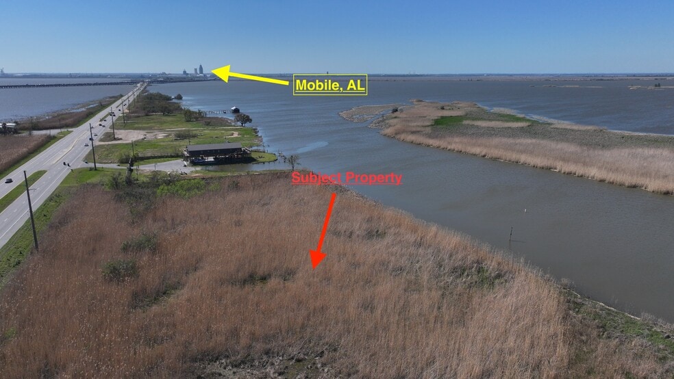 Great opportunity to purchase approximately +/- 5 acres of waterfront land on Battleship Parkway next to the famous Original Oyster House Restaurant. Over 758 feet of waterfront land on Pass Picada (Pineda Pass) which runs alongside Mobile Causeway. This strip of water is a high-traffic maritime corridor connecting the Mobile Delta to the open waters of Mobile Bay. It offers incredible visibility for any commercial or recreational venture. Unlike the open bay, this "pass" or channel provides a more sheltered environment for boat docking and water-level activities while maintaining direct deep-water access because of its protected navigable waters.Being situated directly next to a landmark like the Original Oyster House gives the land instant recognition and part of the historic "Causeway" dining and entertainment district. The land offers unobstructed views of the Mobile skyline to the west and the expansive delta marshes to the north and east—perfect for "golden hour" sunsets.The tremendous ecosystem of the surrounding area is rich in local wildlife, frequently seeing pelicans, blue herons, and even manatees during the warmer months, which adds significant "nature-viewing" value to the property. Buyer to rely on their own due diligence, survey, boundary lines, wetland delineation, etc. Buyer to verify all information during due diligence.