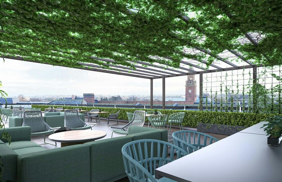 The landmark House of Fraser building at the heart of Leamington Spa has been transformed to offer Grade A office accommodation. Staff and visitors will enter the office via a newly created reception on Bedford Street which provides a contemporary and modern arrival experience. The internal accommodation offers open plan workspace with lots of natural light. A roof terrace and garden with views across Leamington Spa and the countryside beyond, along with a games room provides relaxed spaces to help workers concentrate or unwind. New male, female and accessible WCs are provided on all floors. Bedford Street Studios are strategically positioned just one mile from the town’s mainline station. From there, Central London is just 50 mins away and Birmingham 40 mins. Junctions 13, 14 and 15 of the M40 are approximately three miles away, providing quick access to the NEC and Birmingham International Airport. The building is located at the vibrant heart of the town, with easy access to a range of business, retail and leisure amenities, including the Royal Priors Shopping Centre and excellent transport links. Royal Leamington Spa’s strategic location and natural spa have ensured the town’s popularity with visitors and residents over the centuries. The evidence is apparent in its mix of modern amenities and Regency architecture.
