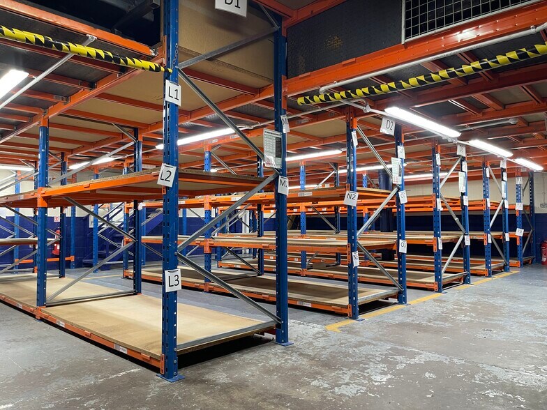 - Extensive floor to ceiling, double level racking and storage system.