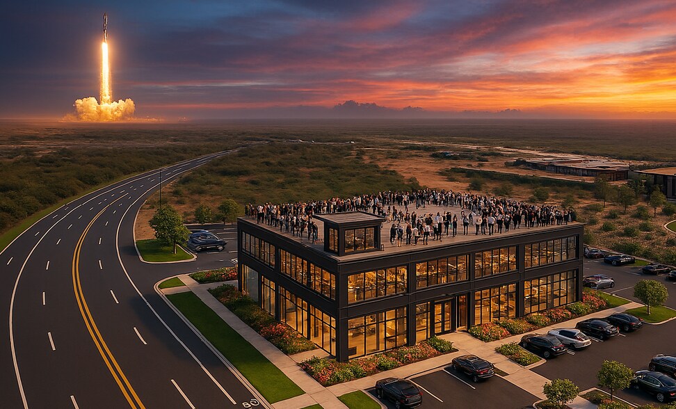 A FRONT ROW TO HISTORY, IN MOTION At ground zero of modern space history, The Launchpoint is strategically positioned at the sole western approach to Starbase— a place built in expectation of global attention, where people gather and history unfolds in real time.