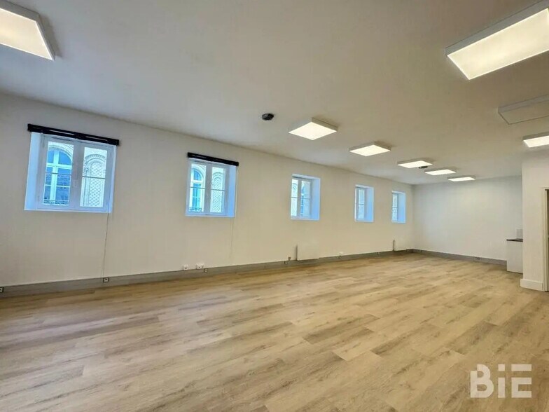 BORDEAUX GRANDS HOMMES - Au coeur du Triangle d'Or, au troisième étage d'un immeuble en pierre, BIE vous propose un plateau de bureaux lumineux de 90 m². Organisé en open space et bureaux privatifs, ces bureaux bénéficient de nombreux commerces et services à proximité ainsi que d'une très bonne desserte par les transports en communs. Surface lumineuse en angle de rue Travaux de rénovation prévus par le bailleur Plateau aménagé en open space et bureau privatif Cloisonnement modulable Kitchenette Sol moquette Luminaires LED en faux plafond Plinthes périphériques Sanitaire privatif Ascenseur Interphone 90 m² non divisibles Situation/Transports : Tramway Hôtel de Ville (TRAMWAY-A), Gambetta - madd (TRAMWAY-B), Quinconces (TRAMWAY-C, TRAMWAY-D) Bus Gambetta (BUS-2, BUS-3, BUS-4, BUS-12, BUS-15) logo parking Grands Hommes - Tourny Dépot de garantie : 3 mois de loyer HT/HC