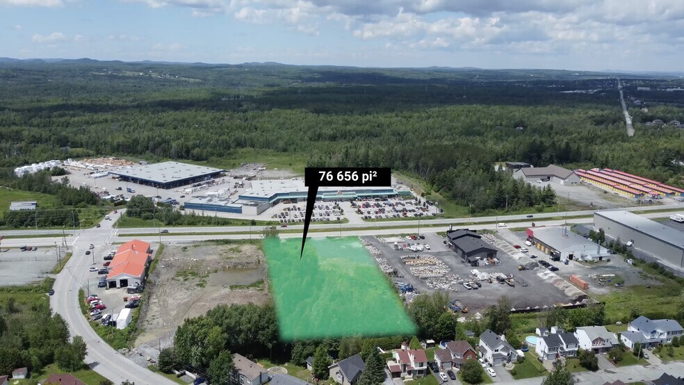 This 76,656 sqft lot is located on the main artery of Boul.Bourque, generating a lot of traffic and offering great visibility for a future project. This lot offers several possibilities and is ideal to accommodate a commercial building or a mini warehouse project. The land is served by municipal services, but are not connected. Wetland compensation was settled in 2013. It includes a stream with a strip of shoreline protection, a culvert and a rock entrance.