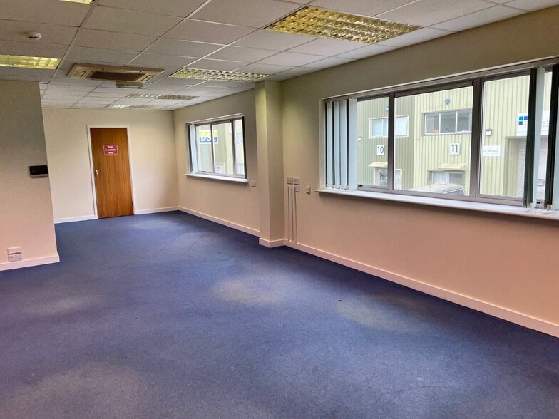 A steel portal framed warehouse with profiled steel cladding and roof. 3 phase power, eaves height 17ft, roller shutter door, glazed pedestrian door and disabled toilet. Ground floor office/showroom with window to the front. The first floor offices with double glazed windows to front and rear, carpeting, suspended ceilings and air conditioning / heating. 5 car parking spaces plus loading area. Communal car parking on the estate.