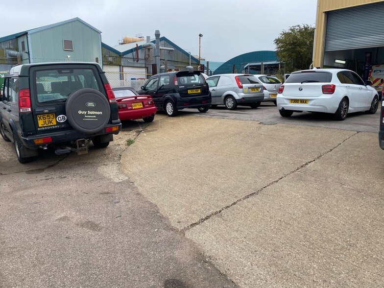 Industrial unit with roller shutter door, which includes a 127 sq ft / 11.9 sq m mezzanine. Previously used as a vehicle repair workshop. Secure yard/car parking, totaling 3,924 sq ft / 364.5 sq m.