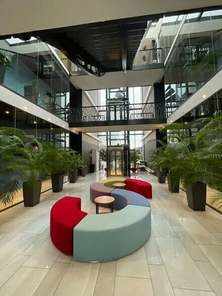 Le bâtiment profite d’un environnement tertiaire de qualité et d’une architecture soignée. Les parties communes présentent un très bon niveau de prestation, offrant une accessibilité fluide et un confort adapté aux activités professionnelles. Le site bénéficie d’une bonne visibilité depuis les axes routiers à proximité, facilitant les déplacements des collaborateurs comme des visiteurs. La desserte est simplifiée par la proximité des grands axes ainsi que des transports en commun, permettant un accès rapide depuis les communes voisines. L’immeuble est entretenu avec attention et propose des services adaptés aux besoins des occupants, offrant un cadre de travail agréable et structuré.