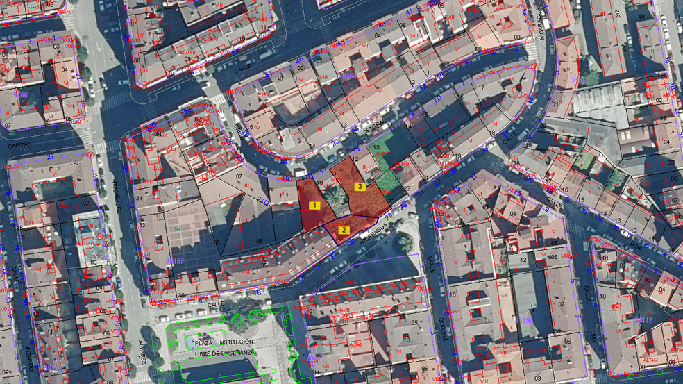 El terreno está conformado por 3 unidades registrales y se presenta como una oportunidad de inversión y desarrollo residencial. La superficie ocupable en planta se ha medido sobre el plano del planeamiento, ya que no se especifica en la ficha urbanística.