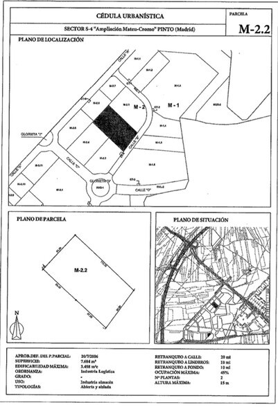Plot for sale in the industrial area of the Pinto industrial estate, in Madrid. It is a plot that has a total area of 7,684 m2 and a buildable area of 3,458 m2. You can build an industrial warehouse with 2 floors and a height of 15 meters. It is located in a consolidated and expanding industrial area. Ideal for developers who want to promote in the area. It enjoys excellent transport links.