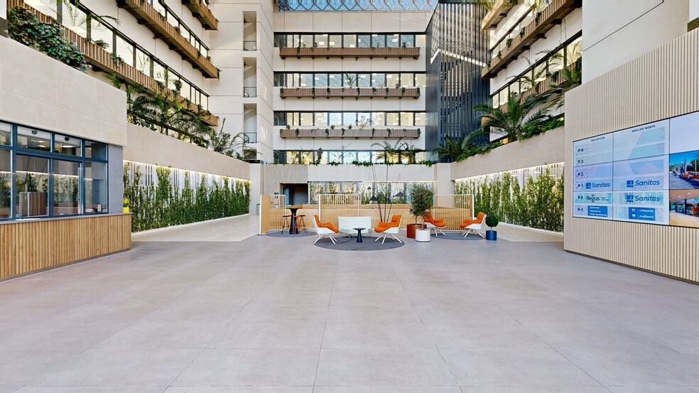 Located at 16-18 Ribera del Loira Street, Atria is designed for companies looking for modern and functional offices in Madrid. The property offers spacious and bright floors with high ceilings and hot/cold air conditioning with zone control, providing a comfortable and efficient working environment. Its central garden atrium, together with a large patio with skylight, provides natural light and a corporate image of great impact. The building includes an auditorium, a restaurant area, a terrace, and a central lobby that reinforces the professional presence and functionality of the space. Security and comfort are guaranteed with 24-hour security, 270 outdoor and 26 indoor parking spaces, as well as access to public transport by metro and several urban bus lines. BREEAM Certified Very Good, Atria ensures sustainability, efficiency, and well-being for users. Its strategic location, in the extension of the Campo de las Naciones Business Park, places it close to the IFEMA fairgrounds, with direct access to the M-40, N-II, and A-10 motorways, and just eight minutes from Adolfo Suárez Madrid-Barajas Airport. This location, situated in one of Madrid's most dynamic and established business areas, makes it an ideal option for national and international companies seeking excellent communications and all the necessary services for their business.