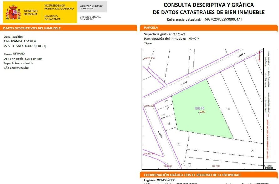 Great investment opportunity in Valadouro, Lugo!... THREE CADASTRAL REFERENCES: 5937023PJ2253N0001AT - 5937035PJ2253N0000XR - 5937021PJ2253N0001HT... We offer you a consolidated urban land with great potential, located in the town of Valadouro, in the province of Lugo, with the cadastral reference 5937023PJ2253N0001AT and its adjacent plot. This land is included in the General Urban Development Plan, ensuring its viability for various development projects... Urban use: Multi-family residential between party walls... Buildability: 3,207.12 m²... Probable development: Multi-family building with 5 floors above ground, including ground floor and attic, featuring 35 residential units averaging 90 m² each. Additionally, it includes 2 underground floors designated for 60 parking spaces and storage rooms... The land is bordered to the north by a semi-rural area with scattered homes and low urban consolidation, and to the south by several municipal buildings, ensuring a peaceful and well-connected environment... Prime location: It boasts an excellent location, surrounded by essential services such as supermarkets, health centers, and entertainment areas. Everything necessary to ensure a comfortable and practical lifestyle. The natural surroundings and tranquility of the area perfectly combine with proximity to all services and easy access to major communication and transportation routes... For more information: María - **692**511**381**... Visit without obligation. 0% Commission for buyers on this property... IKESA Real Estate informs that it does not charge any commission for properties from Financial Entities and Investment Funds, as well as New Construction projects... The price does not include expenses that may legally correspond to the buyer, such as ITP, VAT, Notary, and Registry fees.