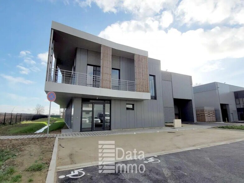 À VENDRE - À LOUER - IMMEUBLE NEUF - DISPONIBLE IMMÉDIATEMENT DATA IMMO vous propose, au sein d'un parc d'activités neuf, un bâtiment indépendant de 781 m², disponible à la vente ou à la location. Ce bâtiment moderne offre des prestations de qualité et un environnement propice au développement de votre activité. L'immeuble se compose d'espaces de bureaux et d'une zone de stockage bénéficiant d'un excellent niveau d'équipement. Bureaux : Les bureaux disposent de finitions soignées avec un carrelage au sol au rez-de-chaussée et un revêtement en lames PVC imitation parquet à l'étage. Une terrasse accessible à l'étage apporte un espace extérieur agréable. Ils sont équipés de la climatisation réversible, d'un éclairage LED, de la fibre optique, d'une baie de brassage et de distributions courant fort / courant faible. Des sanitaires sont prévus à chaque niveau. Activité / Stockage : La partie stockage bénéficie d'un accès livraison via une porte sectionnelle motorisée (L 4 m x H 4,50 m) et d'une hauteur libre de 7,50 m. Le dallage industriel en béton supporte jusqu'à 3 tonnes/m², et le chauffage est assuré par des aérothermes électriques. Le bâtiment dispose de 8 emplacements de stationnement privatifs. Pour toute information et programmer une visite, contactez DATA IMMO