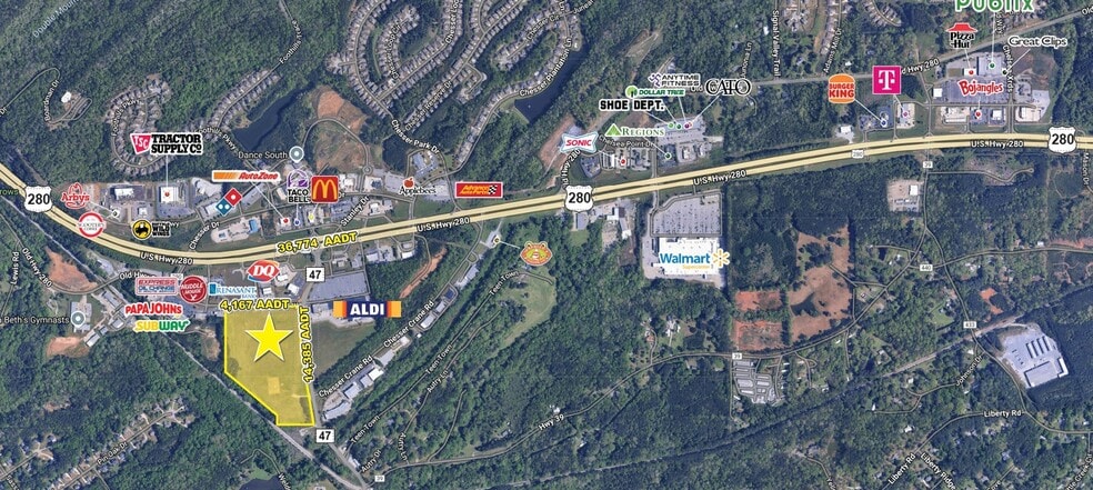 This 20 ac REGIONAL POWER CENTER occupies a prime location at the southwest quadrant of Chelsea Corners Way and Highway 47, offering immediate access to the significant U.S. Highway 280. This highway serves as a major regional connector to Birmingham and other key locations in Alabama and Georgia, and is the primary commuting route for Chelsea residents working in Birmingham and other parts of Shelby and Jefferson counties. As one of Alabama’s fastest-growing cities, Chelsea’s economic development is closely tied to its advantageous position along the US-280 corridor within Shelby County and the Birmingham-Hoover metropolitan area. This location has fostered strong residential growth, supported high household incomes and rising property values, and facilitated the city’s development as a retail hub while attracting diverse businesses and infrastructure investment.