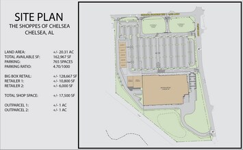 The REGIONAL POWER CENTER is located at the southwest quadrant of Chelsea Corners Way and Highway 47 with immediate access to U.S. Highway 280. This corridor serves as a major regional connector into Birmingham and other key markets in Alabama and Georgia. It is also the primary commuting route for Chelsea residents traveling into Birmingham and surrounding counties. The project will be anchored by a national big-box retailer and will include two junior anchors, shop space, and two outparcels along the frontage. This mix creates opportunities for a variety of retail, service, and restaurant users. Chelsea is one of the fastest growing cities in Alabama. Strong residential growth, high household incomes, and rising property values have positioned the city as a retail hub within Shelby County and the Birmingham-Hoover MSA. This development will be well positioned to capture that growth and serve the expanding market.
