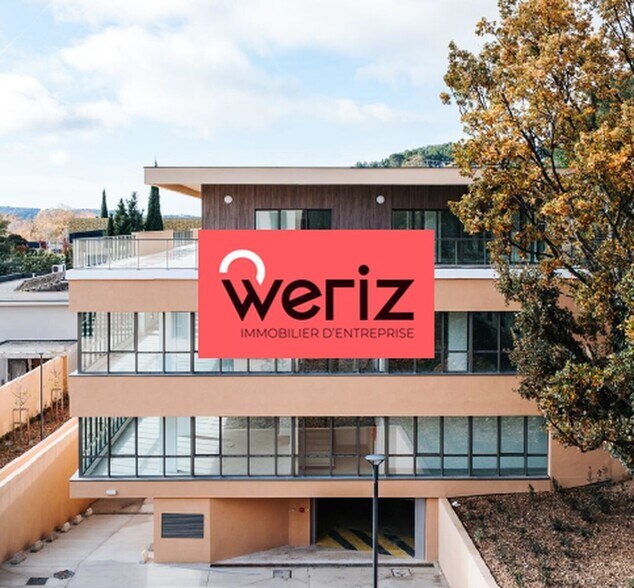 WERIZ, acteur indépendant du marché de l'immobilier d'entreprise en Métropole Aix Marseille Provence vous propose à la location, deux immeubles de bureaux neufs en R+2 et R+3 totalisant une surface de plus de 5 300 m². Ces immeubles offrent une bonne visibilité de l'autoroute et sont proches des axes autoroutiers, des bus et des restaurants. Les bureaux bénéficient de loggias et de grandes terrasses filantes avec une belle vue sur la Sainte-Victoire. L'ATRAVAIA I bénéficie d'un ERP 5 et l'ATRAVAIA II d'un ERP 3 (idéal pour une école), Labellisation Breeam Very Good Certification Wired Sore. Nombreux emplacements de parkings disponibles en sous sol et extérieurs.
