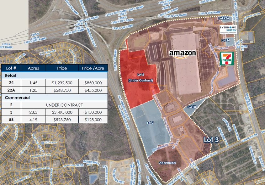 The Military Business Park is a 200+ acre commercial park strategically located near Fort Liberty (formerly Fort Bragg), one of the U.S. Army’s largest military installations. The park will host retail, commercial and light industrial users, including a 1 million square foot Amazon distribution center as well as a 7-11, Everhome Suites, and apartments under development.