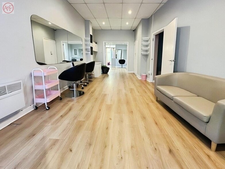 To the rear is a separate store room, along with an office/preparation room fitted with additional spot lighting, heater, corner sink and further storage. Supporting facilities include a kitchenette, cloakroom with WC and wash basin, and a rear lobby with access to the outside. Externally, the property benefits from two allocated car parking spaces, a valuable asset for staff or customers.