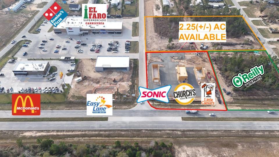 The site is conveniently located next to El Faro Grocery Store, McDonalds, Sonic, Church's Chicken, Little Caesars Pizza, Dominos, O'Reilly Auto Parts, Cottonwood Elementary, Liberty County Annex, Community Center W/Splashpad & Soccer Fields, DG Market and Builder Model Homes nearby. Price is $9-$12 per Ft. depending on location. Price shown is for 1 acre at $9/Ft for rear of 8.6AC parcel.
