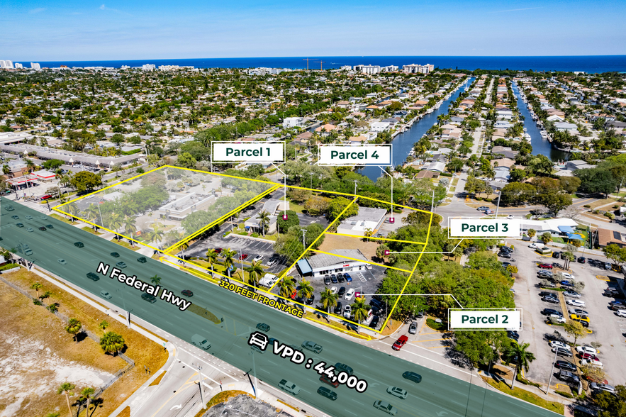 This is a rare opportunity to acquire a high-profile, contiguous development site in Lighthouse Point, Florida—one of Broward County's most sought-after coastal communities. Located along the high-traffic corridor of US-1/Federal Highway, this ±2.01-acre assemblage offers significant redevelopment potential. The site consists of three tenant-occupied commercial properties generating immediate income and presenting a strong value-add or repositioning opportunity through zoning changes. The proposed redevelopment envisions a vibrant mixed-use project with retail or restaurant space on the ground floor and multifamily residential units above, consistent with the growing demand for walkable, amenity-rich living environments in affluent suburban markets.