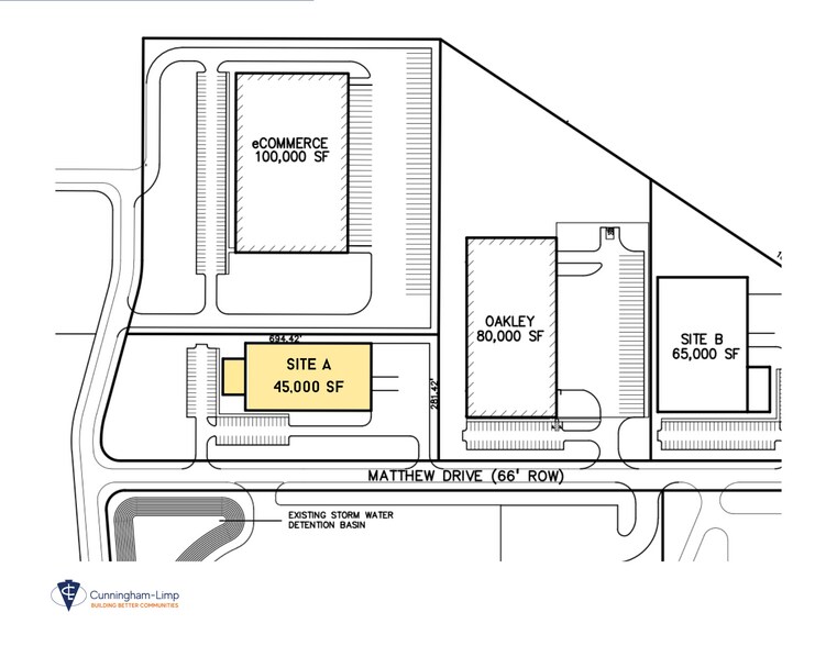 Concept Development Specs: • 65,000 SF (60k SF Warehouse + 5k Office) • High bay design with 6-inch concrete floors • Clear height of 24’, optimizing storage and operational space