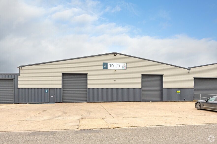 Unit 2 is a prominent building fitted with lights, power, fire alarm and frame mounted gas blower heaters (gas supply can be re-connected by the landlord if heating is required). The unit was recently refurbished including recladding to the front elevations and new doors as part of a comprehensive refurbishment of the whole estate. The building has an eaves height of approx. 5.8m rising to approx. 7m at the central apex. The building has 3 roller shutter doors to the front. Two are ground level whilst the third (to the right on the photos) is ramped forming a tailgate height loading platform internally,