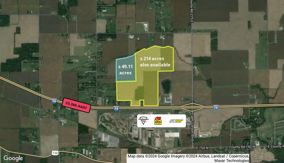 + ± 49.11 acres prime development land + Contiguous to nearly 300 acres also available + Utilities near site + Quick interstate access in fast-growing area + Ideally suited for industrial development + Convenient access to I-74, I-465, and Airport