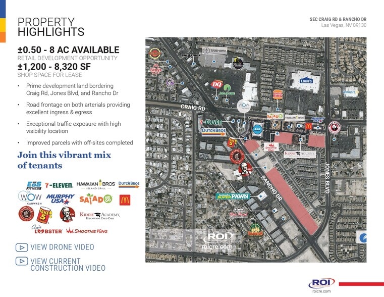 Land available for lease with frontage and curb cut on Jones Blvd.? Cross access with all surrounding tenants, including EOS Fitness, Salad and Go, Hawaiian Bros, Kiddie Academy, McDonalds, Murphy Oil, 7-Eleven, WOW Car Wash, Take 5 Oil Change, and KFC.? Landlord willing to construct multitenant building, Build to Suit for single tenant user, or ground lease.?