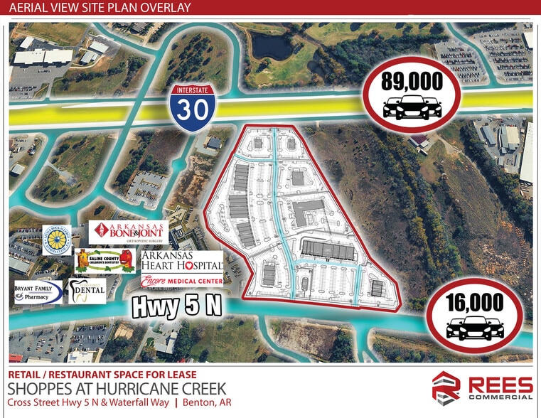 + 41,427 SF shopping center development adjacent to the Arkansas Heart Hospital + Access from I30 Frontage Rd & Hwy 5 N + Three (3) drive-thrus & up to four (4) patios availalble + Prime Benton / Bryant location situated directly on the city boundary line + Within a quarter mile from one of the highest grossing Kroger Marketplace in Arkansas
