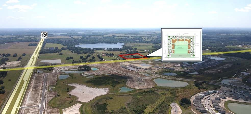 Located just a quarter mile south of the new State Road 52 Extension and Curley Rd intersection, which will feature around 80,000 square feet of retail/shopping and numerous restaurants planned and just over 1.5 Miles from the new Publix at SR52 and Mirada Blvd. Additionally planned at the I75 and SR52 interchange, Double Branch which will have over 5 million square feet of distribution and warehousing and create an estimated 6,000 jobs and also 3,500 homes, as well as Amazon and Target, which will employ an estimated 2,400 jobs.