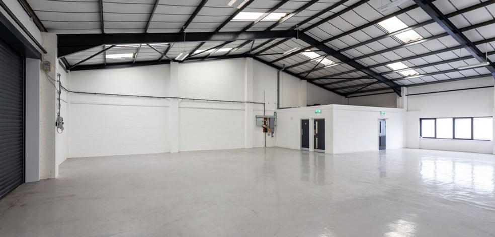 Located within the well-established Timberlaine Trading Estate, Units 1–2 enjoy a strategic position with excellent access to major transport routes and local amenities. The estate is situated in a prominent industrial area, ideal for logistics, trade, and light manufacturing businesses. The units comprise two adjoining industrial/warehouse spaces of steel portal frame construction, featuring part brick and profile metal clad elevations beneath pitched roofs. Each unit offers generous internal eaves height, full-height roller shutter loading doors, and dedicated parking and loading areas to the front. Internally, the accommodation provides clear-span warehouse space with ancillary office areas and WC facilities. The units are suitable for a variety of industrial, storage, and distribution uses, subject to planning.