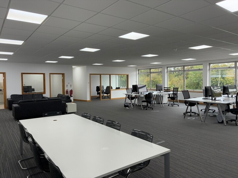 Denbigh House offers a fully refurbished first floor office suite of 1,893 sq ft (175.86 m²) with 8 allocated car parking spaces. The suite features predominantly open-plan accommodation, two private offices, a kitchenette, carpeted raised access flooring, gas central heating, suspended acoustic ceiling tiles with recessed LED lighting, and benefits from good natural daylight. The property has an Energy Performance Rating of B (49) and is available at a competitive rent. [Denbigh House | PDF]