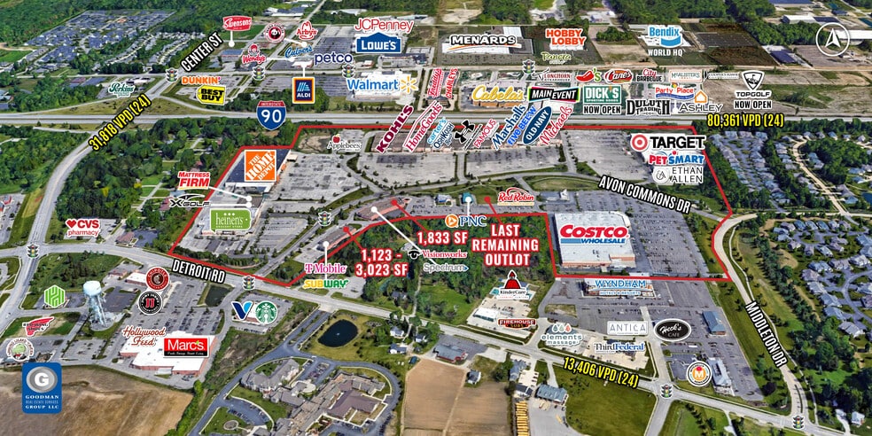 ANCHORS: Target, Costco, Kohl’s, Marshalls, Old Navy, Michaels, Heinen’s Grocery Store, The Home Depot, and HomeGoods CUSTOMERS: Over 116,000 people within a 5-mile radius TRADE AREA: Draws from all of Lorain and western Cuyahoga counties AVERAGE HOUSEHOLD INCOME: Over $117,000 within a 5-mile radius HIGHWAY VISIBILITY: Interstate 90 at the State Route 83 Interchange AVAILABLE: Last remaining outlot in the restaurant park