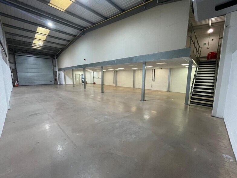 The property comprises a mid-terrace unit of steel frame construction with brick elevations beneath a pitched, insulated roof. It is currently undergoing refurbishment to enhance operational efficiency. Key features include an eaves height of 4.75 meters, three-phase power supply, an electric roller shutter door, LED lighting, and a concrete floor. A mezzanine level provides additional office or storage space, supporting flexible business operations.
