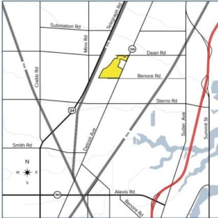 Class 1 railroad borders the west side of the property. Rail owner is CSX Transportation Distance to nearest rail yard, 8 miles to the south in Toledo. On-site spur/no (formerly owned by CSX) Site – specific rail connection requirements: The site borders the railroad for nearly ½ mile, and it is anticipated that a rail spur could be feasibly constructed. Connection to the existing railroad would require coordination with CSX Transportation. Great location for intermodal yard for bulk or automotive rollon/roll-off (RORO) traffic.