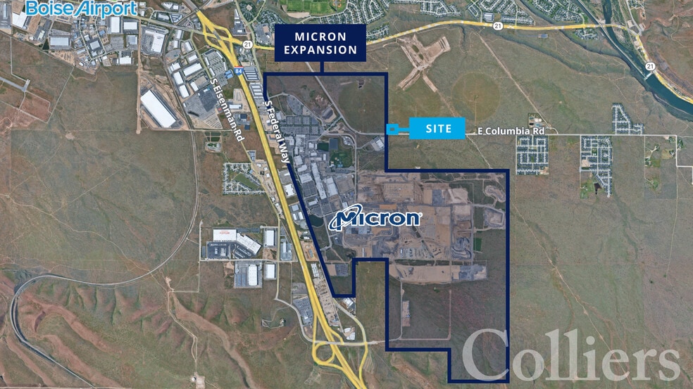 Rare 1.84 +/- acre parcel located across from Micron Technology. Due to the previous ownership– Ada County has indicated a good chance for CUP and/or variance to current zoning for industrial use.