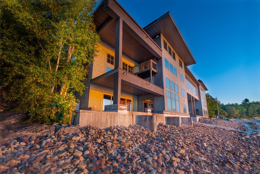 - 175' frontage on Lake Superior/Shelter Bay. Private access off M28. 2.52 Acres. 10,000 SF spread over 3 Dwellings
