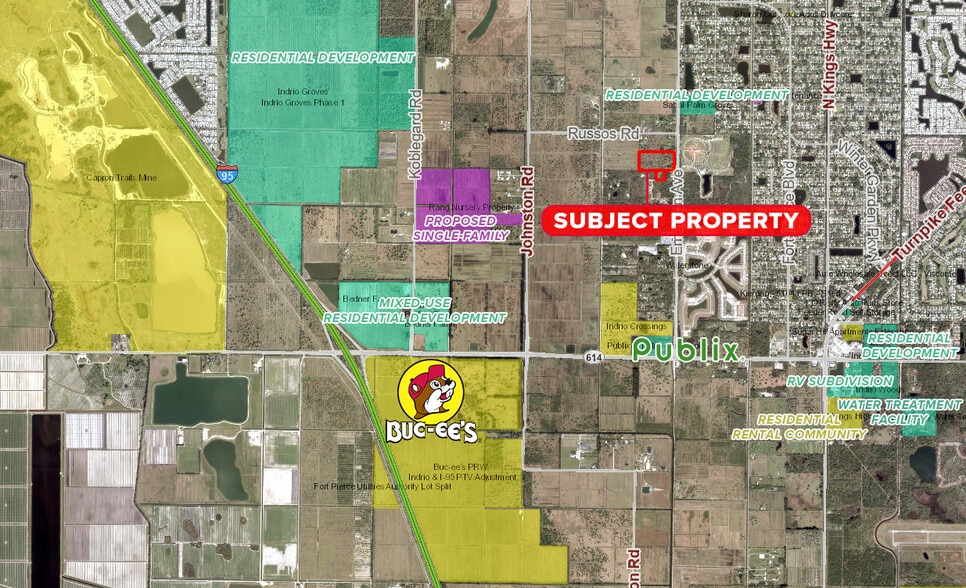 21.38± acres in Fort Pierce positioned in the path of growth and well suited for single-family or multifamily residential development. Located near major new projects including a future Publix and the area’s first Buc-ee’s, with quick access to I-95 and US-1. Seller is motivated and ready to transact — excellent opportunity for builders seeking near-term pipeline sites.